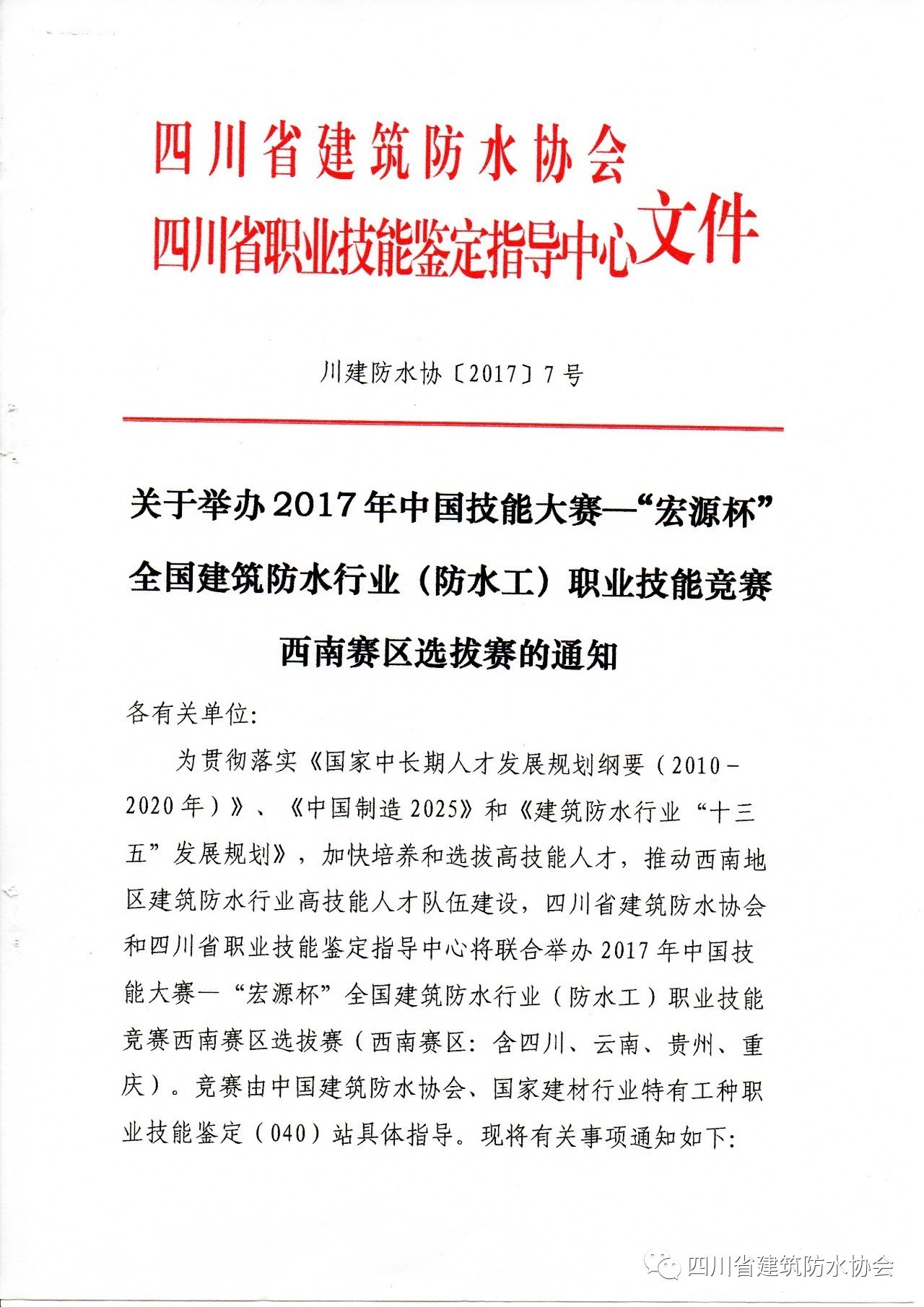 防水工技能大赛,四川协会已办了两年,四川协会已做出了很大的努力,工作得到了省人社厅相关领导的大力支持,今年已列为四川省级的大赛,各优异成绩获得者,都将得到政府部门的认可。